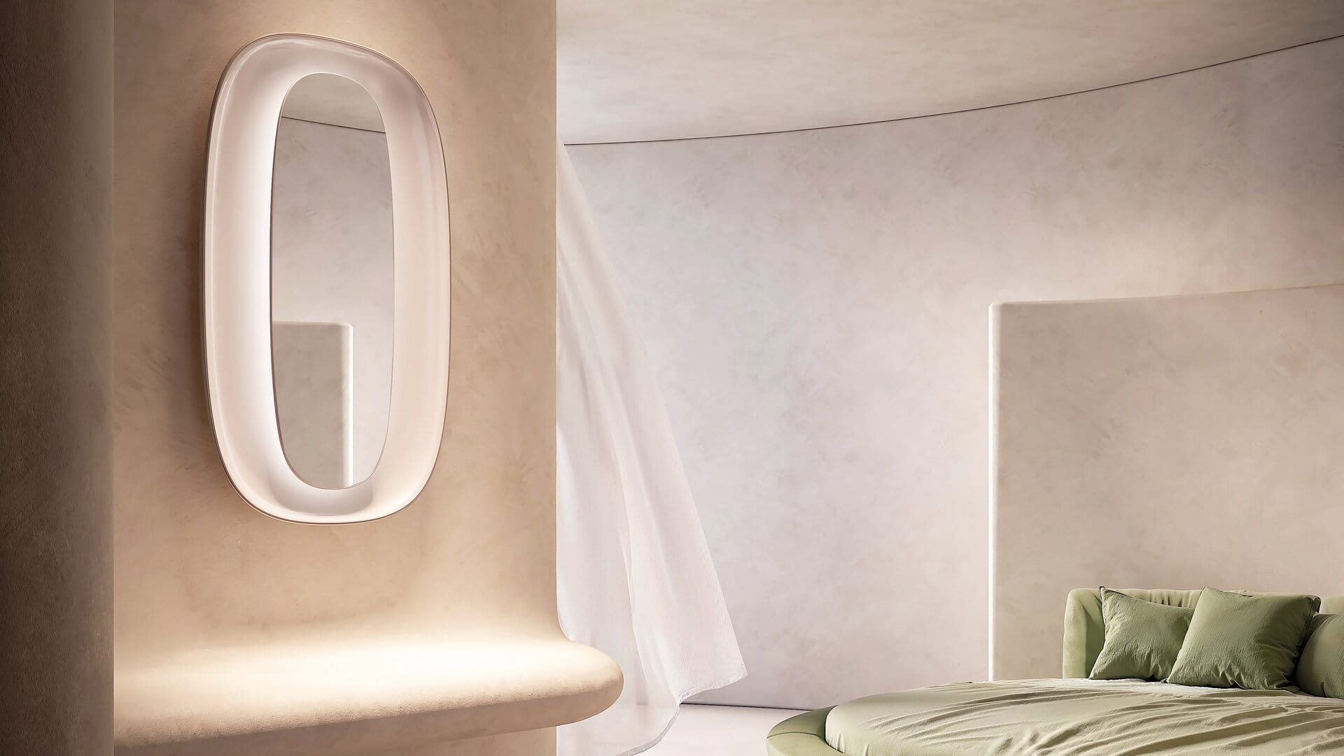 Korum is a family of indirect lighting products designed by Karim Rashid for Cini&Nils. Its name, inspired by the word corum, meaning shield, recalls a design conceived to enhance soft, gentle light. Available in suspended or wall-mounted versions, it embodies the creative approach of one of the most iconic designers on the contemporary scene, with a vision that combines aesthetics and function. Korum is distinguished by the possibility of modular installation: single, double or in multi-coloured combinations, with different light orientations depending on requirements. The large wall and ceiling versions are also available with a mirror-effect front cover, adding an extra functionality that makes it perfect for those seeking a multifunctional and visually striking piece of furniture. The finishes, with great attention to detail, stand out thanks to the introduction of the new glossy and flip paint versions, which represent an evolution from the standard Cini&Nils finishes. These options enhance the threedimensionality of the design, capturing the light and adding depth and character to the lamp. With its scenic presence, Korum is a furnishing element that enhances contemporary environments, lending personality and style to any space.