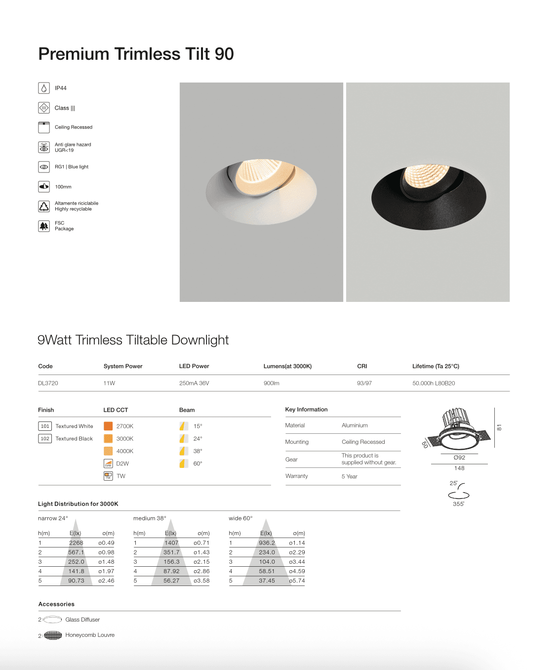 Šviesos kampas (°) | 15; 24; 36; 60 |